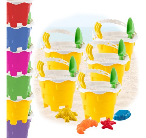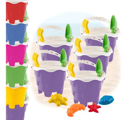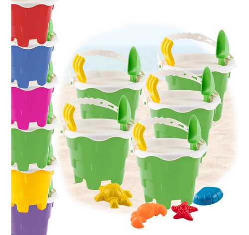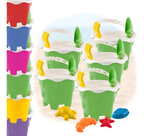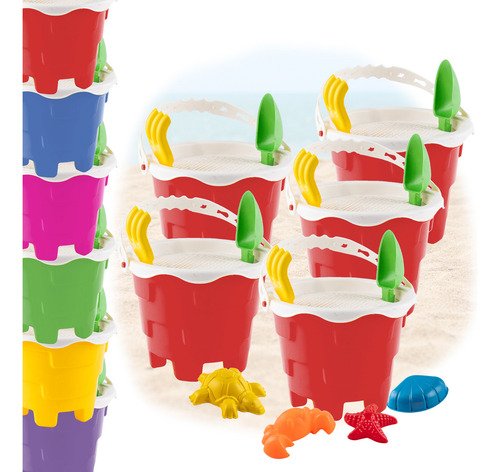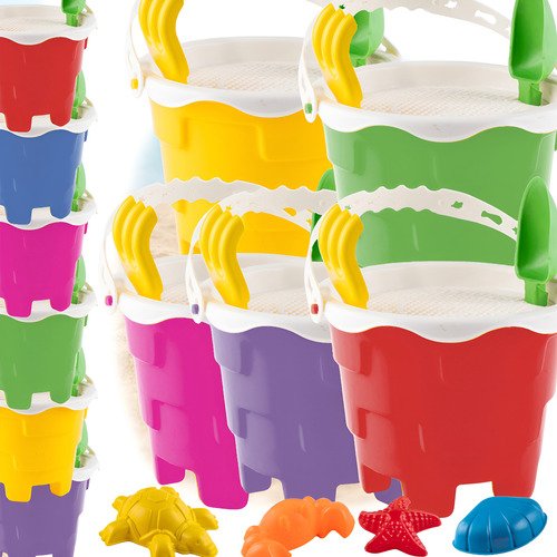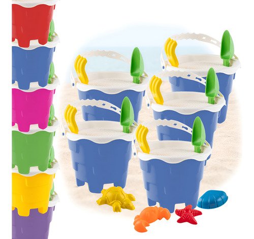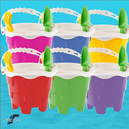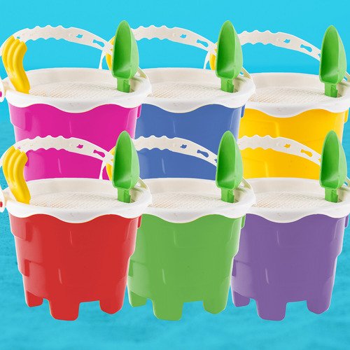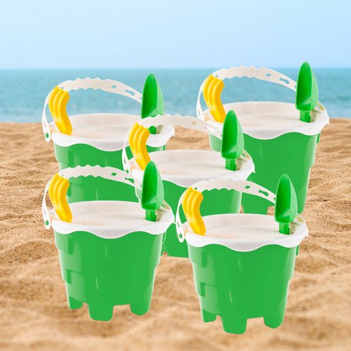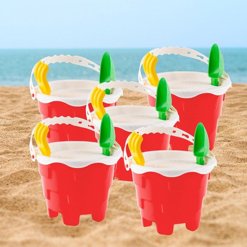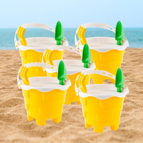 5 Baldes com Alça: Para carregar areia, água ou brinquedos.