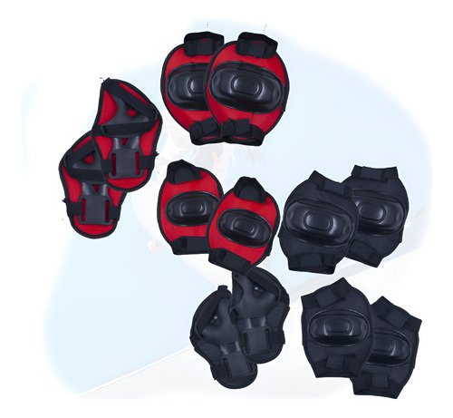 Conjunto com 6 peças: 2 joelheiras, 2 cotoveleiras e 2 protetores de punho