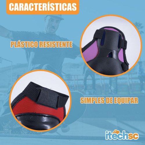 - Protetores de Punho Reforçados: Inclui as importantes munhequeiras com tala rígida, essenciais para prevenir torções nos pulsos, que são comuns em quedas de patins e skate.