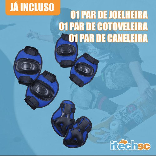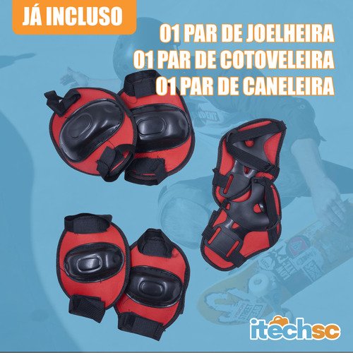 Não deixe que o medo de cair atrapalhe a diversão ou a evolução no esporte. O Kit de Proteção Completo da iTechSC é o equipamento indispensável para quem anda de patins, skate, patinete ou bicicleta. Projetado para absorver impactos e evitar ralados, ele garante que você ou seus filhos possam praticar manobras e passeios com total tranquilidade.
