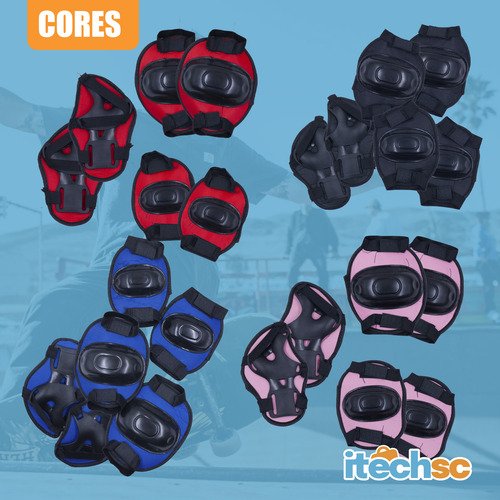 Conjunto com 6 peças: 2 joelheiras, 2 cotoveleiras e 2 protetores de punho