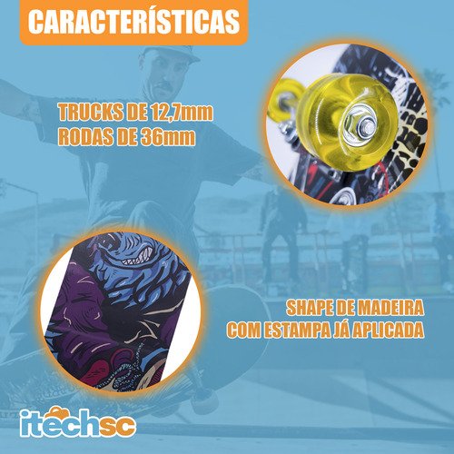 Bem-vindo à ITECH SC! É um prazer recebê-lo em nossa loja! Temos orgulho de servir clientes em todo o Brasil. Sinta-se à vontade para entrar em contato com nossa equipe e descobrir tudo que temos a oferecer. Agradecemos por escolher a ITECH SC e esperamos que você tenha uma excelente experiência de compra conosco! ———————————————————————————————————————– Apresentamos o Skate Street Completo. Diversão e estilo garantidos! Este skate é perfeito para iniciantes ou praticantes que desejam aperfeiçoar suas habilidades. Com design moderno e estrutura resistente, ele oferece segurança e performance para crianças e adolescentes. ———————————————————————————————————————– Alta Qualidade: Desenvolvido com alto padrão, ideal para iniciantes e praticantes. Segurança: Shape com camadas prensadas. Conforto e Durabilidade: Rodas em poliuretano macio, amortecedores em PVC para absorção de impactos e resistência. Qualidade: Semi profissional Idade Indicada: A partir de 5 anos Estrutura: Reforçada para alta durabilidade Dimensões: 79cm (comprimento) x 20cm (largura) Materiais: Madeira, poliuretano e metal Conteúdo: 01 Skate montado ———————————————————————————————————————– Quais são os benefícios do skate para crianças? Promove diversão, desenvolvimento motor, equilíbrio e interação social. Também é inclusivo, já que permite que crianças convivam com skatistas mais experientes e se inspirem neles. Qual é a diferença entre um skate infantil e um profissional? Skates infantis são menores, mais leves e projetados para facilitar o aprendizado. Eles costumam ter rodas mais macias e um design adaptado para maior estabilidade. Como garantir maior durabilidade para o skate? Evite expor o skate à água, verifique regularmente os parafusos e os rolamentos e use o skate em superfícies lisas e planas. ———————————————————————————————————————– Desperte a paixão pelo skate e proporcione momentos incríveis de diversão e aprendizado para o seu pequeno(a).