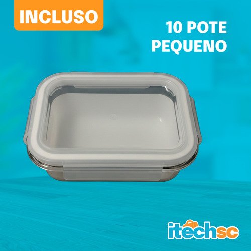 - Conteúdo do Kit: 10 Potes de Vidro Herméticos com tampa.