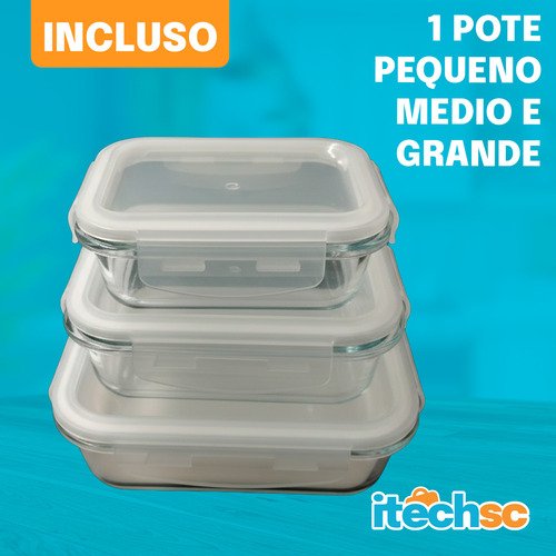 Sabe quando sobra um pouco de molho, a metade de uma fruta ou o prato principal inteiro do almoço, e nunca encontra o recipiente do tamanho certo? O Kit com 3 Potes de Vidro Hermético da iTech SC foi montado para acabar com esse problema. Com uma capacidade total de 2,06 Litros dividida em três tamanhos diferentes, ganha a versatilidade necessária para armazenar desde pequenos lanches até refeições completas para toda a família!