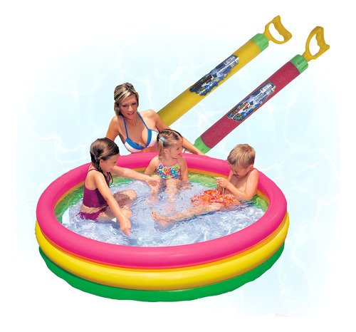 Combo Verão: Piscina Inflável 105L + 2 Lança Água – A Batalha Refrescante Começou!