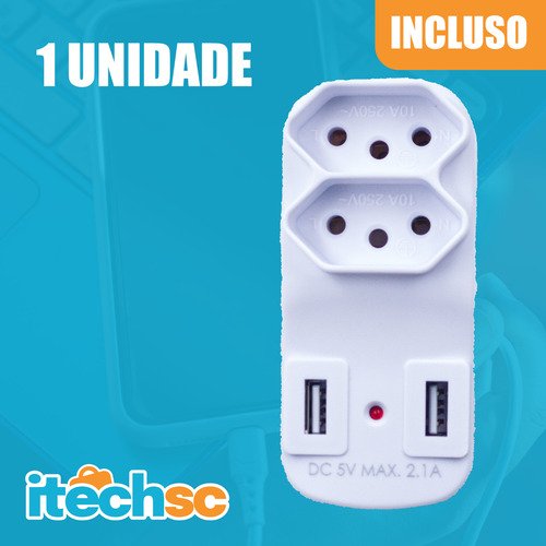 - Dual USB: Carregue dois dispositivos USB ao mesmo tempo enquanto mantém a tomada livre para outro aparelho (liquidificador, luminária, TV, etc).