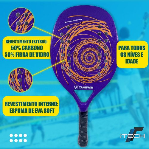 Apresentamos a raquete de beach tennis Camewin: leve, resistente e estilosa. Feita em fibra de carbono, oferece durabilidade e controle excepcionais.