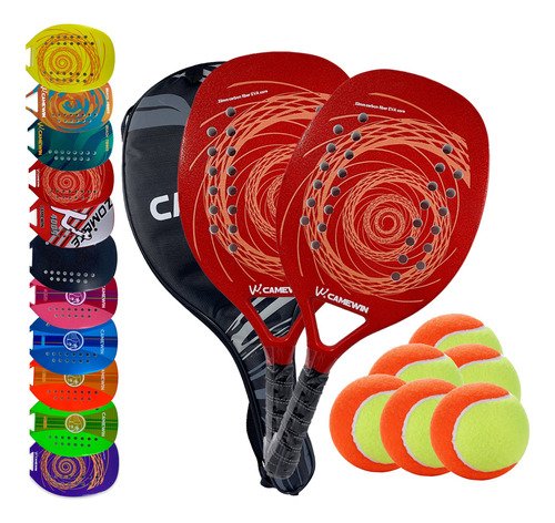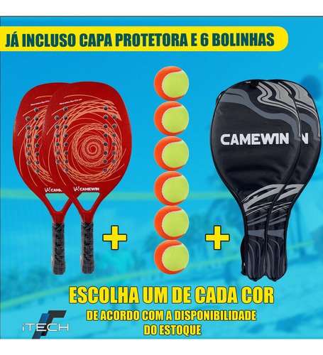 Kit Dupla Beach Tennis: 2 Raquetes Camewin Original + 6 Bolas Profissionais