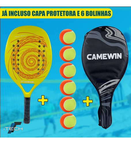 Raquete Beach Tennis Camewin Original + Kit 6 Bolas – O Combo Definitivo para o seu Jogo!