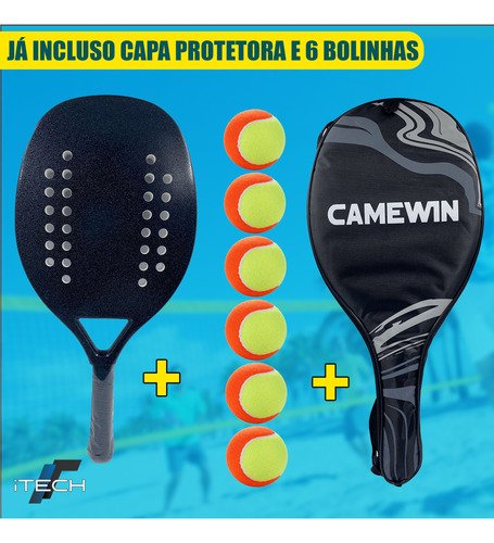 Se você busca performance, durabilidade e economia, o Combo Camewin da iTechSC é a escolha certa. Unimos a raquete de beach tennis mais desejada pelo seu custo-benefício com um pack de 6 bolas profissionais, garantindo que você tenha tudo o que precisa para entrar em quadra e não parar a brincadeira por falta de bolinhas.