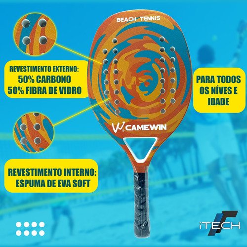Apresentamos a raquete de beach tennis Camewin: leve, resistente e estilosa. Feita em fibra de carbono, oferece durabilidade e controle excepcionais.