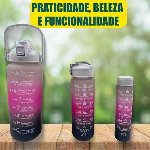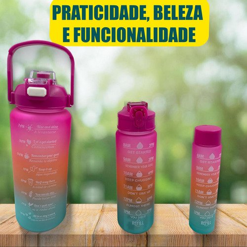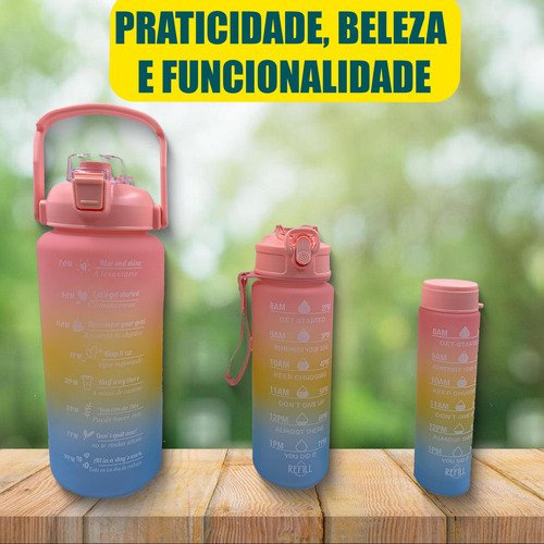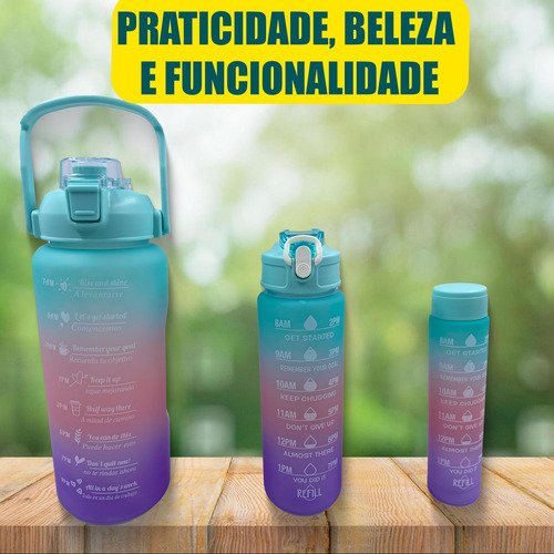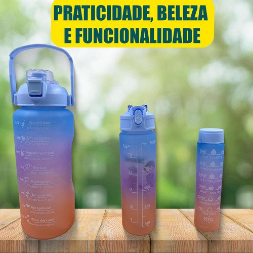 Beba com estilo e praticidade com esse kit de 3 garrafas em 1, que oferece a solução perfeita para se manter hidratado em qualquer lugar.