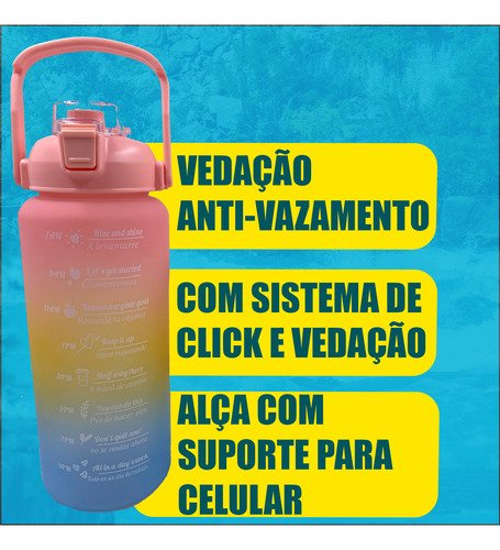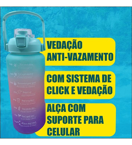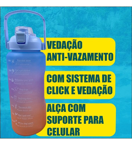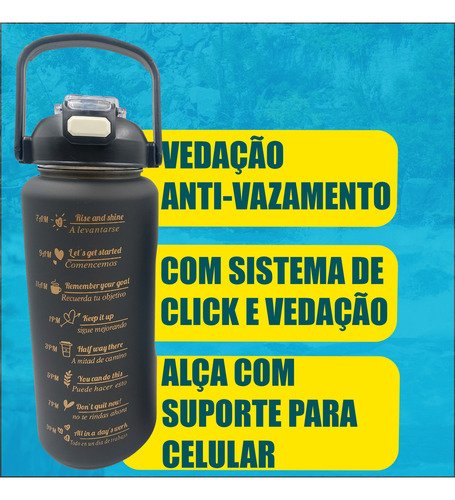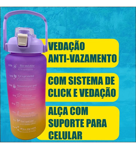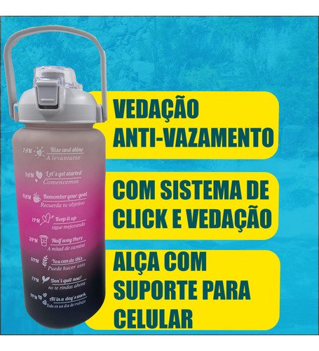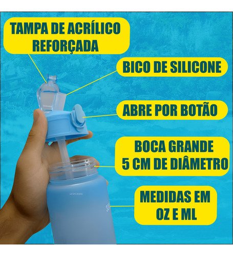 Frases Motivacionais e Marcadores de Tempo: Acompanhe o seu progresso visualmente. As marcações de horários e as frases de incentivo no corpo da garrafa ajudam você a bater a sua meta diária de hidratação sem esforço.