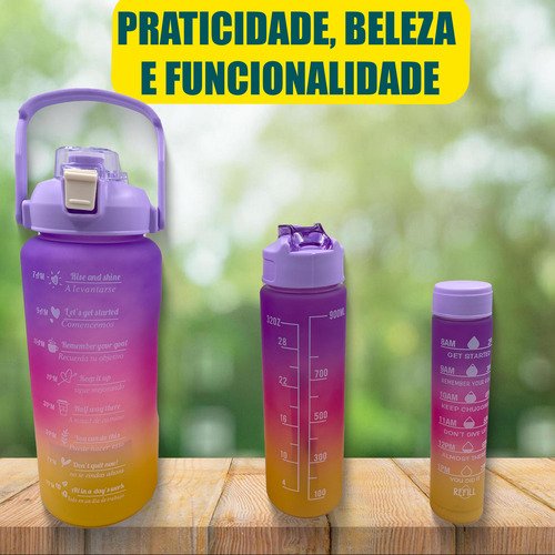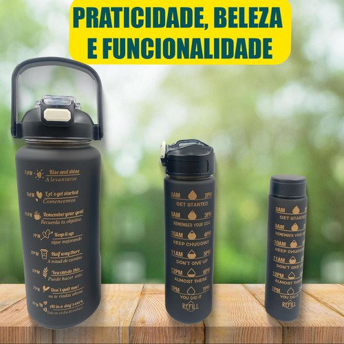 Kit Garrafa Squeeze 3 em 1 Motivacional – A Sua Hidratação Completa para o Dia Todo!