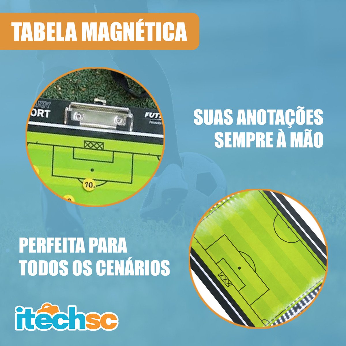 Garanta já sua Prancheta Tática Magnética de Futebol e tenha mais clareza, organização e eficiência na comunicação das estratégias da sua equipe!