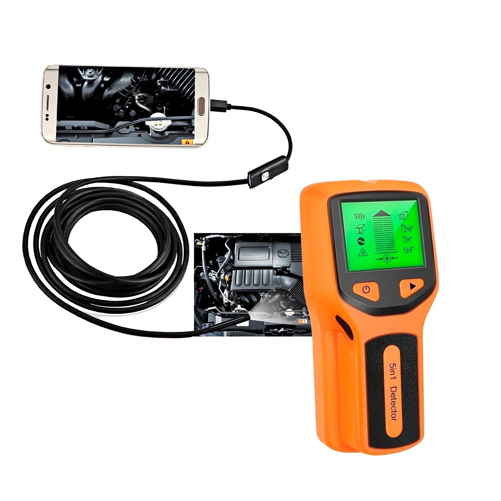 Apresentamos o Kit Profissional 2 em 1, com Detector de Paredes e Câmera Sonda de Inspeção, ideal para quem realiza reformas, instalações elétricas, inspeções e manutenções com alto nível de precisão.