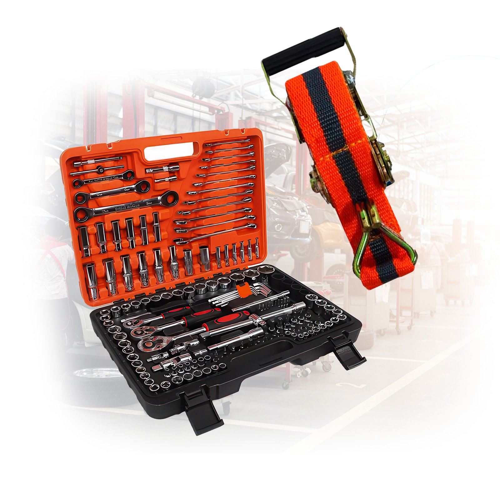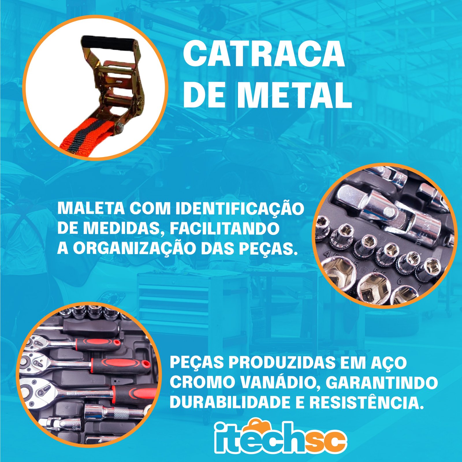 Por que comprar separado se você pode ter a solução completa para o seu trabalho e transporte? A iTech SC uniu dois campeões de vendas em um único kit: a maleta de ferramentas mais completa do mercado e a cinta catraca reforçada. É o equipamento que transforma qualquer imprevisto em uma solução rápida, seja na oficina ou na estrada.
