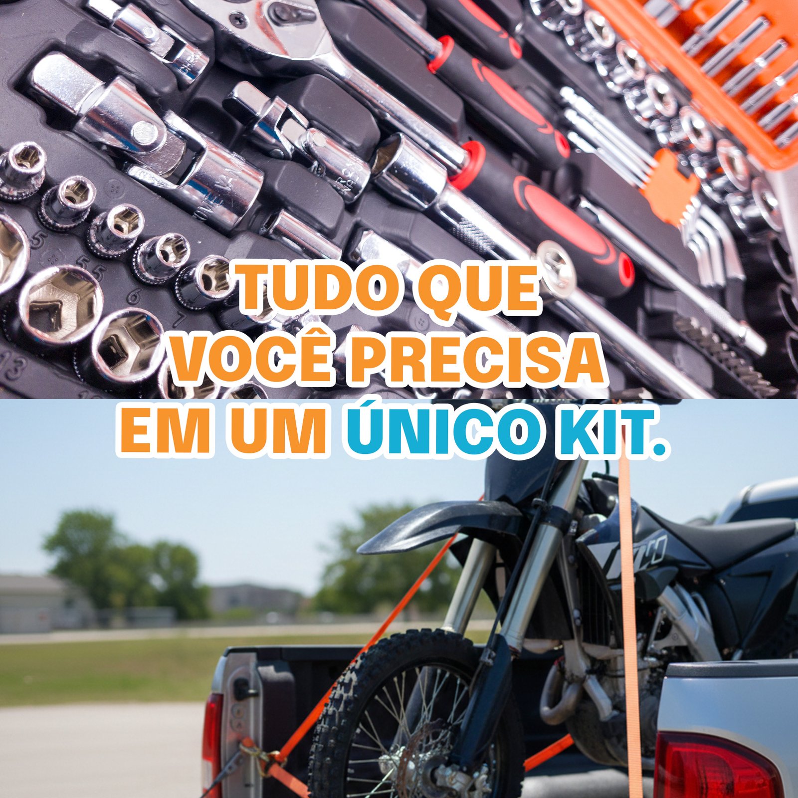 Este kit foi pensado para o profissional que não para. A maleta de 151 peças cobre todas as necessidades de aperto e desaperto com soquetes de precisão e chaves de impacto. Já as duas cintas catraca com travas de metal permitem uma ancoragem firme de motos, móveis ou equipamentos, suportando o balanço da estrada sem ceder.