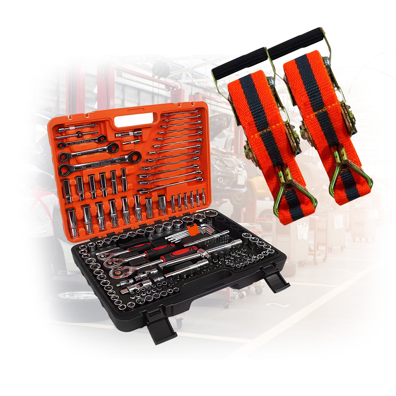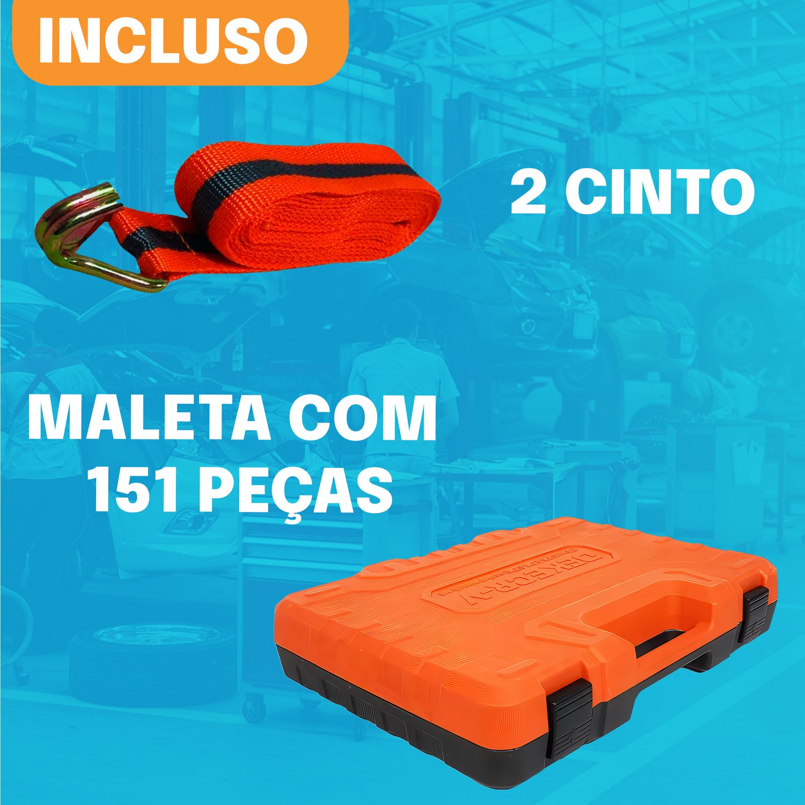Combo Mestre: Maleta de Ferramentas 151 Peças + 2 Cintas Catraca Reforçadas!