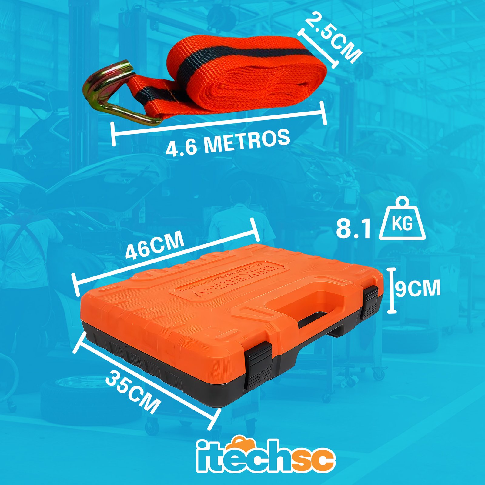 Por que se preocupar em comprar itens separados se você pode ter a solução definitiva para manutenção e transporte em um único pacote? A iTech SC apresenta o combo que não pode faltar no seu dia a dia. Unimos a nossa Maleta de 151 Peças, fabricada em Aço Cromo Vanádio (CR-V), com duas Cintas Catraca de 4,5m, garantindo que você tenha a ferramenta certa para o reparo e a segurança total para a carga.