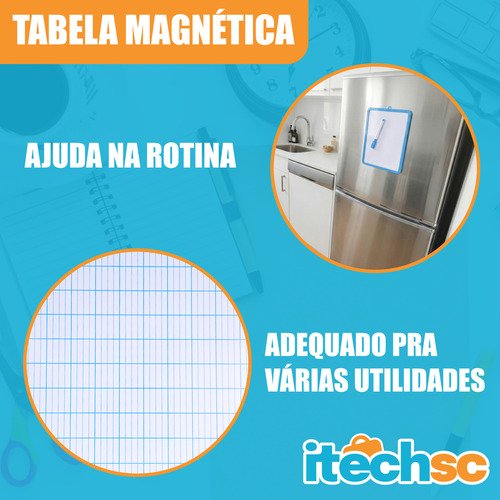 A Tabela Magnética Apagável é a solução ideal para organização do dia a dia, recados, lembretes, estudos e planejamento de tarefas. Pode ser fixada facilmente em superfícies metálicas como geladeiras, oferecendo praticidade e fácil visualização.