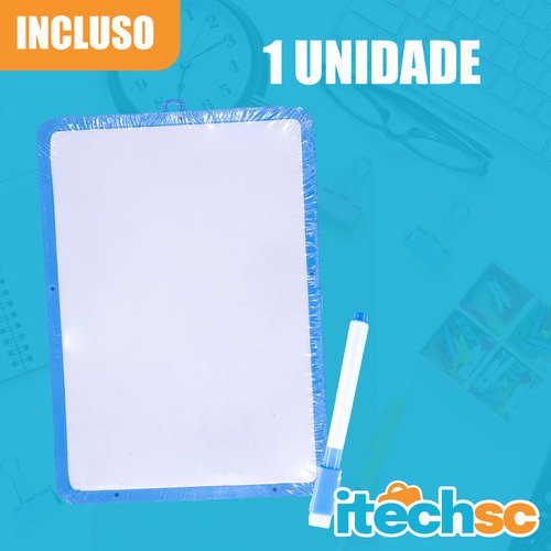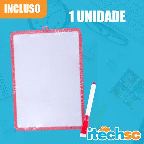 Organize suas ideias, deixe recados importantes ou estimule a criatividade das crianças com o Quadro Branco Pequeno Dupla Face da iTechSC. Compacto e versátil, ele é a ferramenta ideal para ter sempre à mão na sua mesa de trabalho, na cozinha ou no cantinho de estudos, sem ocupar espaço desnecessário.